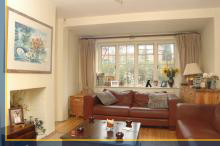 two floors & has three reception rooms and a lovely lawned garden. The property